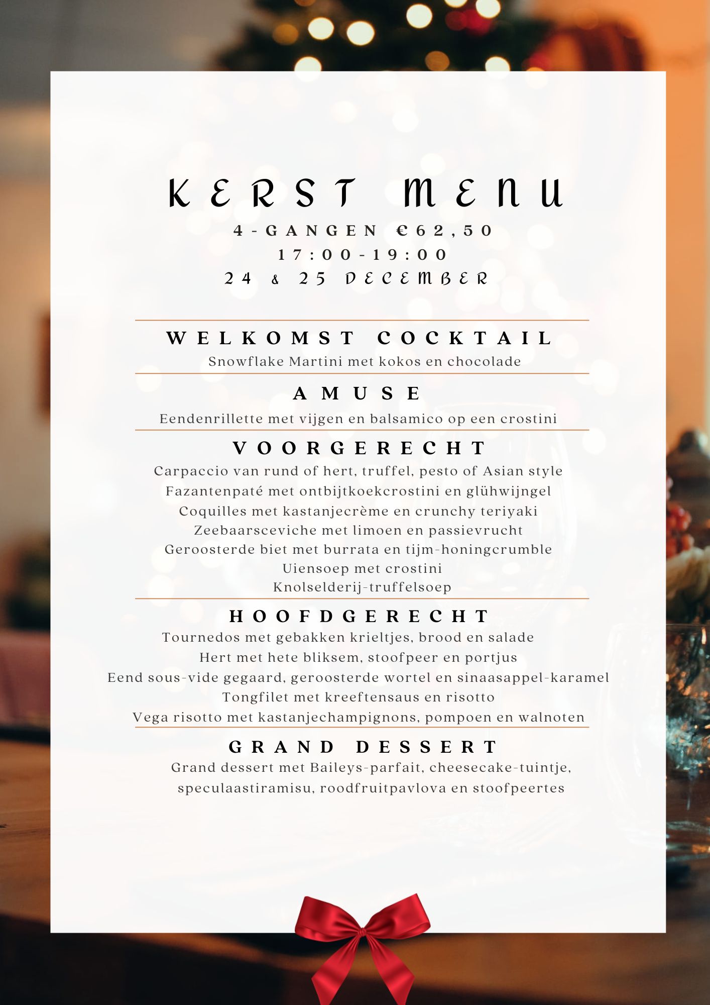 De feestdagen staan bij Orries helemaal in het teken van samen genieten. Tijdens Kerst verwelkomen wij je met een sfeervol aangeklede zaak, fonkelende lichtjes en natuurlijk een speciaal kerstmenu vol verrassende en feestelijke gerechten. Denk aan verfijnde klassiekers met een Orries-twist, passende wijnen en een grand dessert om samen de avond zoet af te sluiten.